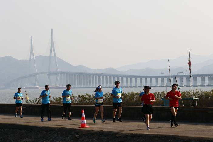 此次比赛路线颇有意思,形似海马,恰好契合了海上马拉松的简称“海马”的寓意。整个路线前半段乡村风情,奔跑在乡间小路;后半段海塘风光,风行在海天一色。