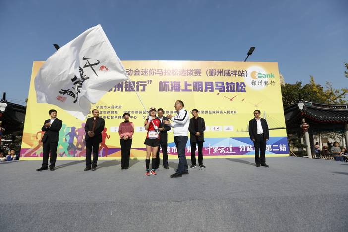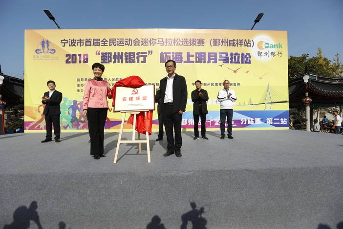 开跑前,在西宅公园举行了隆重的开幕式。开幕上上举行了鄞州银行党委与咸祥镇党委“党建联盟”揭牌仪式和“千里云道”分站赛第二站授旗仪式。