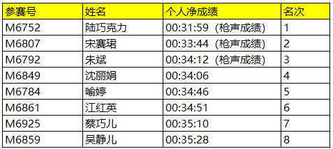 迷你马拉松女子前8名: