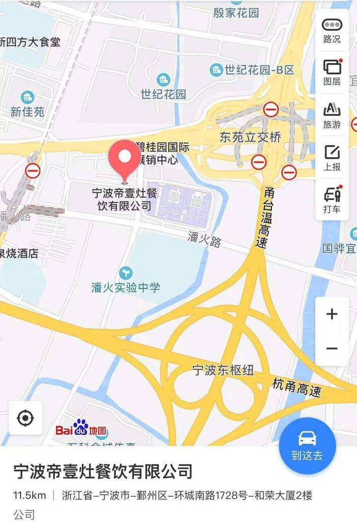 宁波市鄞州区环城南路1728号和荣大厦B座1楼帝壹灶家宴(潘火迪卡侬东面,红星美凯龙西面)