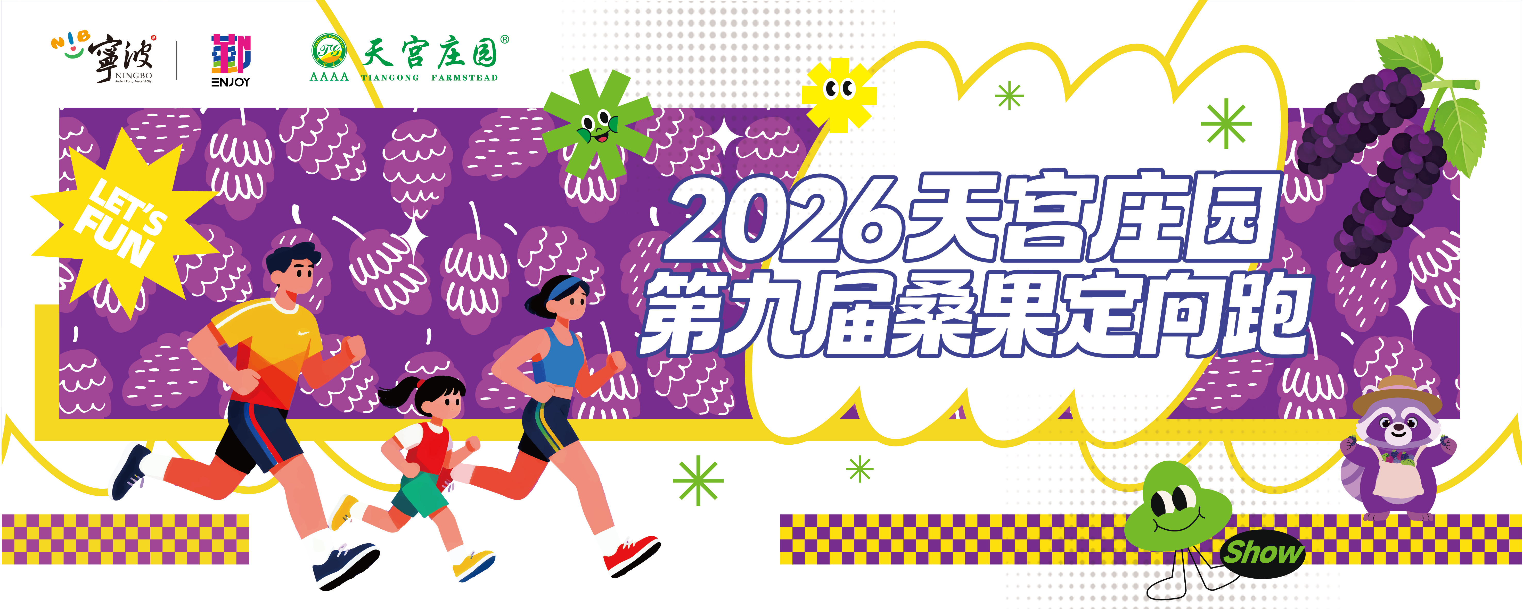 保留天宫庄园桑果主题跑传统特色:设置丛林攀爬、彩虹喷涂、桑果主题合影等互动打卡点。